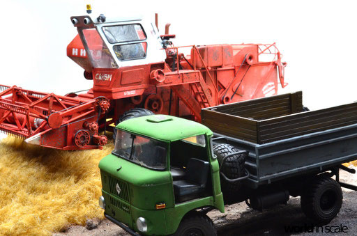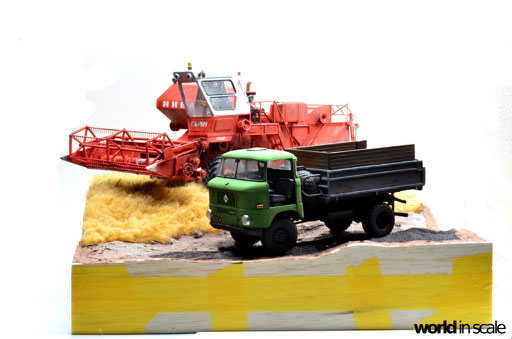 Der Mähdrescher SK-5M-1 "Niva" war der meistgebaute Mähdrescher der USSR, gefertigt von der Firma Rostselmash, einem Unternehmen, das 1929 in Rostov-on-Don gegründet wurde und sich auf die Entwicklung und den Bau von Agrarmaschinen, speziell Mähdrescher spezialisiert hat. Der Name Rostselmash setzt sich zusammen aus "Ростовский завод сельскохозяйственных машин, Rostovskiy zavod sel'skokhozyaystvennykh mashin", was übersetzt soviel wie Rostovs Fabrik zur Herstellung von Landmaschinen bedeutet. Gegründet wurde Rostselmash als regierungseigener Betrieb der eine Vielzahl an Produkten für staatliche FIrmen gefertigt hat. 1931 wurde der erste Stalinets Mähdrescher gebaut, der 1937 auf der Pariser Weltausstellung mit dem höchsten Preis ausgezeichnet wurde. 1940 begann daraufhin die Produktion von fünfzigtausend Einheiten.