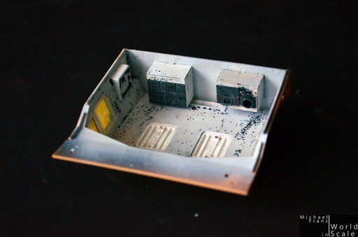 Abschließend werden noch die ausgefahrenen Stützen, die auf die selbe Art wie das Fahrzeug ein Weathering erhalten haben, montiert. Das Fahrzeug ist dann soweit fertig gestellt.