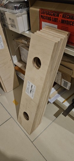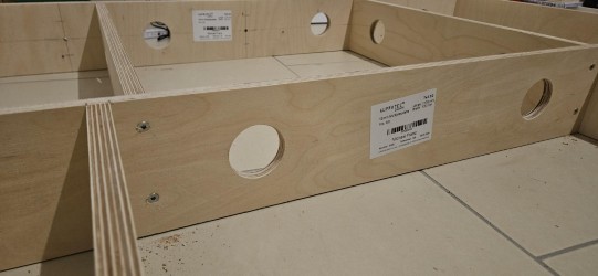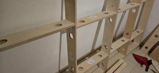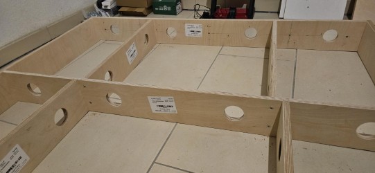 Die hochwertigen Multiplexplatten sind speziell vorbereitet, um eine einfache und stabile Konstruktion des Unterbaus zu ermöglichen. Die Platten werden zunächst mit präzisen 50 mm Bohrungen