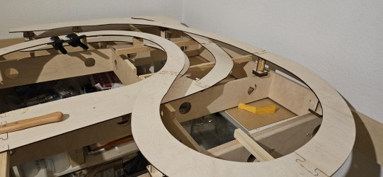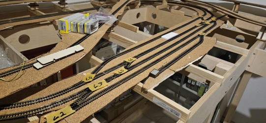 Trassen teils noch passend zugesägt, um Platz für die Landschaft zu schaffen.