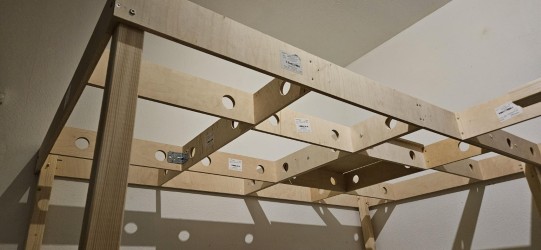 zwei weitere kurze Querträger montiert Hier werden eingeschraubte Metallwinkel für weitere Stabilität sorgen.